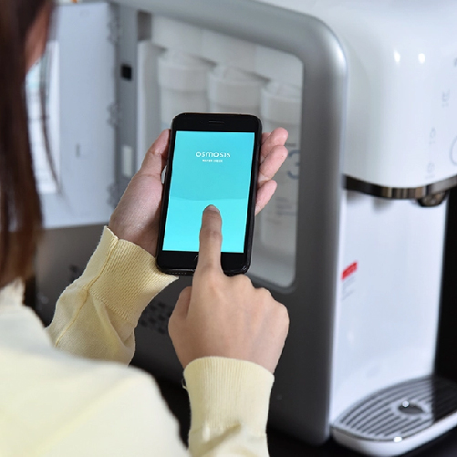 The water purifier is only 185mm wide, so it can be adapted to any kind of environment, also provide pure cold water instantly. You can extract the water by selecting your temperature and volume. The elegant housing of this water purifier is inspired by the unostentatious elegance of a porcelain surface. You can also check the status of the filter lifecycle and manage maintenance easily with your smartphone apps.